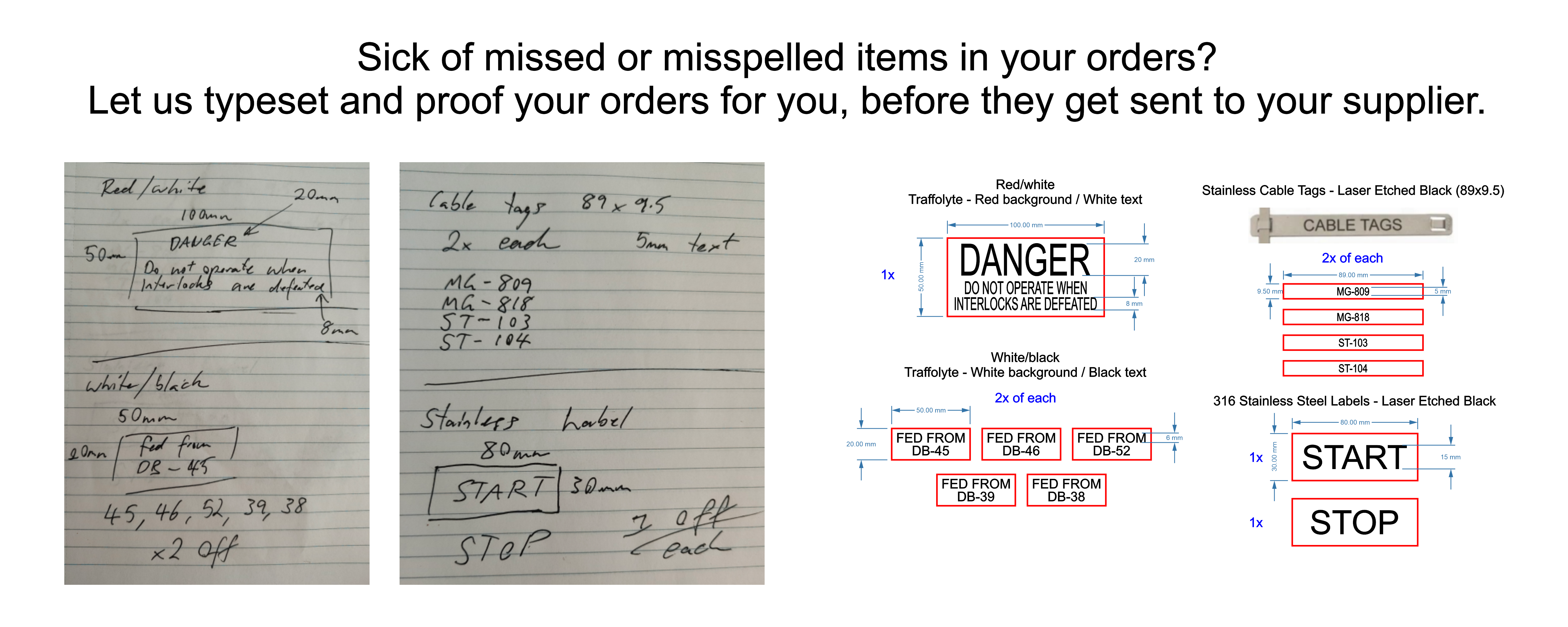 Many companies, such as electricians and contractors, often have orders they need fulfilled by suppliers in the engraving and print industry. However, it's in the suppliers best interest to minimise time spent on typesetting, and get the job out the door.